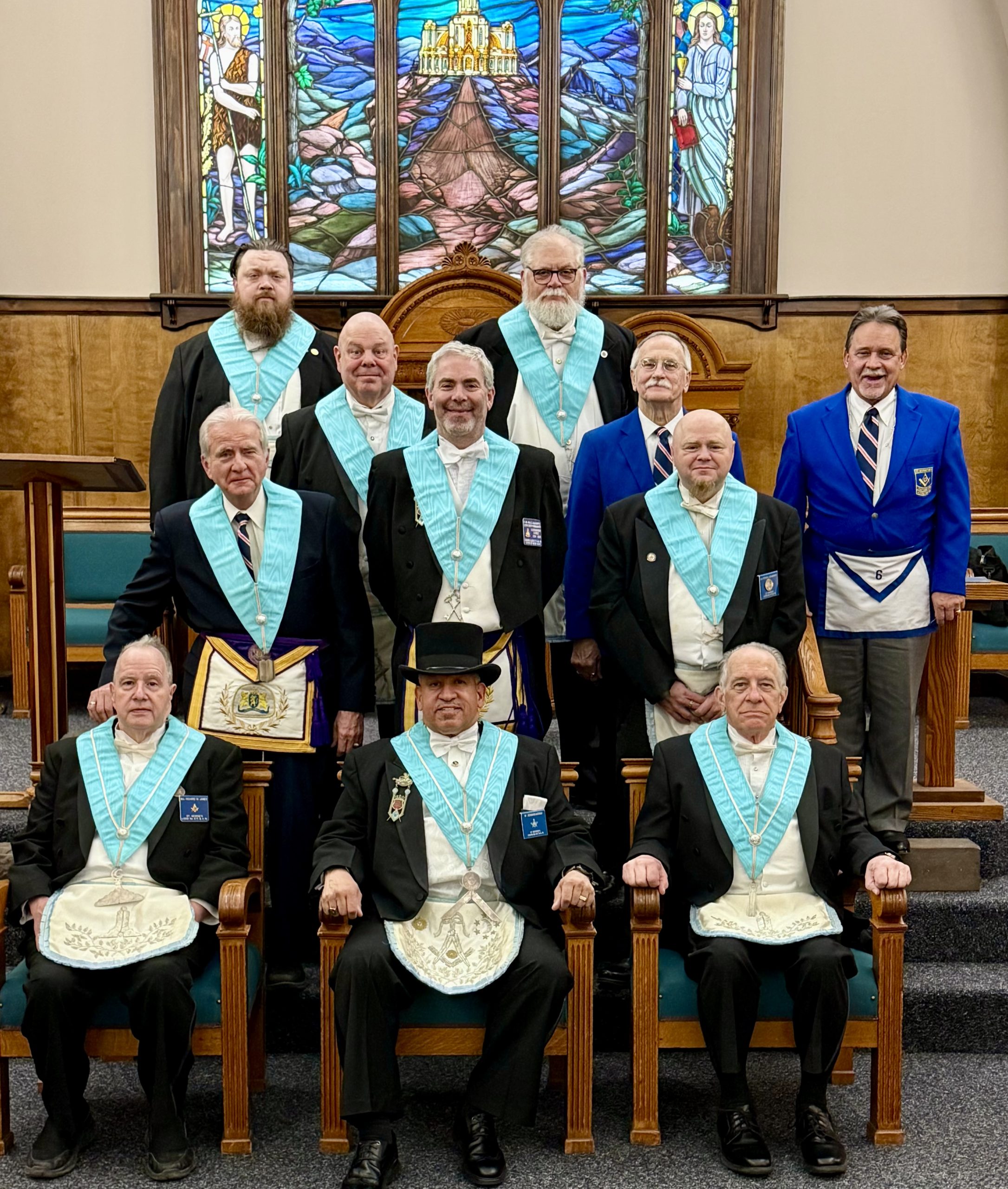 Middle Row: RW.:. Michael Brockbank, RW.:. Paul Hulseapple, Bro. Steven Shalamowitz